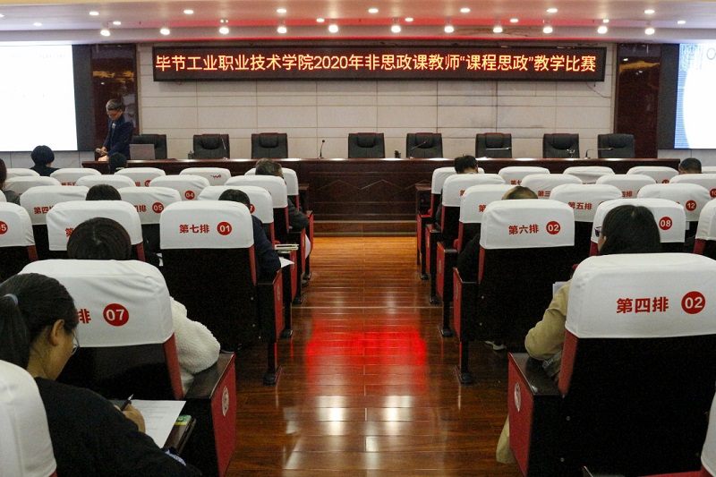 為深入學(xué)習(xí)貫徹習(xí)近平總書記關(guān)于教育的重要論述、全國教育大會精神,貫徹落實(shí)中共中央辦公廳、國務(wù)院辦公廳《關(guān)于深化新時(shí)代學(xué)校思想政治理論課改革創(chuàng)新的若干意見》《高等學(xué)校課程思政建設(shè)指導(dǎo)綱要》等文件精神,把思想政治教育貫穿人才培養(yǎng)體系,全面推進(jìn)學(xué)院課程思政建設(shè),發(fā)揮好每門課程的育人作用,提高學(xué)院人才培養(yǎng)質(zhì)量,培養(yǎng)擔(dān)當(dāng)民族復(fù)興大任的時(shí)代新人。2020年10月14日下午,畢節(jié)工業(yè)職業(yè)技術(shù)學(xué)院在行政樓9樓會議室舉行2020年非思政課教師"課程思政"教學(xué)比賽,全院教職工觀摩了比賽。