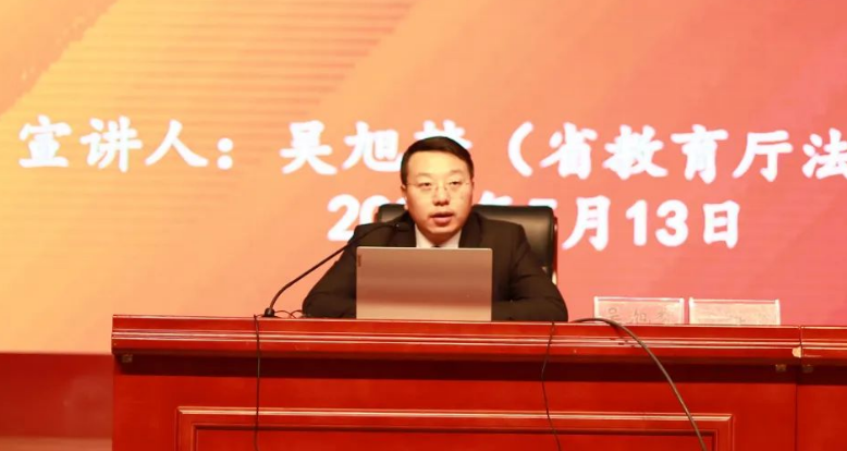 5月13日下午,畢節(jié)工業(yè)職業(yè)技術(shù)學(xué)院邀請(qǐng)省教育廳法律顧問(wèn)吳旭夢(mèng)博士在學(xué)院會(huì)議中心開(kāi)展習(xí)近平法治思想專題宣講,黨委委員、宣傳統(tǒng)戰(zhàn)部部長(zhǎng)余斌主持宣講,學(xué)院300余名師生參加學(xué)習(xí)。