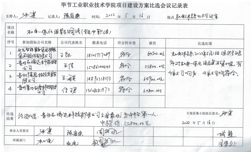 畢節(jié)工業(yè)職業(yè)技術(shù)學(xué)院機(jī)電一體化(中職組)省賽設(shè)備設(shè)備項(xiàng)目征集方案比選結(jié)果公示