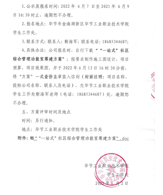 為深入學(xué)習(xí)貫徹習(xí)近平總書記關(guān)于教育的重要論述,適應(yīng)新形勢新情況,加強(qiáng)高校黨的建設(shè)和思想政治工作的重要體制創(chuàng)新,加強(qiáng)學(xué)生社區(qū)綜合管理,推動(dòng)黨的建設(shè)、思政力量、管理力量、服務(wù)保障等深入學(xué)生一線,逐步打造富有中國特色體現(xiàn)思政要求、貼近我院實(shí)際、貼近學(xué)生實(shí)際的生活園區(qū)。根據(jù)《中共畢節(jié)工業(yè)職業(yè)技術(shù)學(xué)院委員會(huì)“一站式”學(xué)生社區(qū)綜合管理建設(shè)工作方案》,特制定本籌建方案。