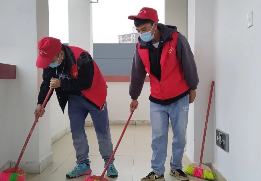 志愿者們表示:我們這棟樓的老師很負(fù)責(zé)任,起早貪黑,除了完成疫情防控規(guī)定的工作外,經(jīng)常深入寢室與大家交流,給大家作思想工作,提醒大家上網(wǎng)課,還親自帶起大家一起勞動(dòng),為我們樹立了榜樣,我們非常敬佩老師們的工作精神。