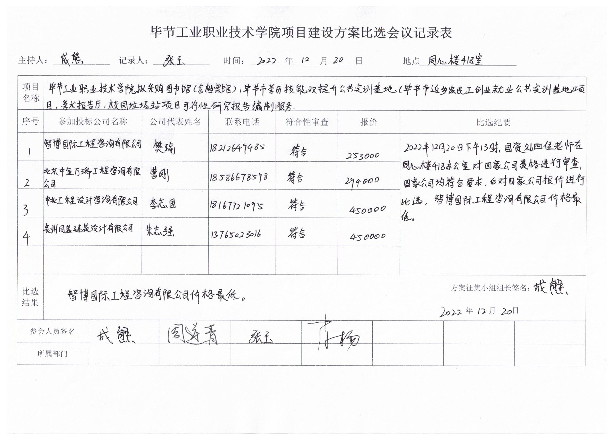 畢節(jié)工業(yè)職業(yè)技術學院擬采購圖書館(含檔案館)、畢節(jié)市職業(yè)技能學歷雙提升公共實訓基地(畢節(jié)市返鄉(xiāng)農民工創(chuàng)業(yè)就業(yè)公共實訓基地)項目、學術報告廳、校園垃圾站可行性研究方案、相關規(guī)劃、評估報告編制服務詢價結果公示