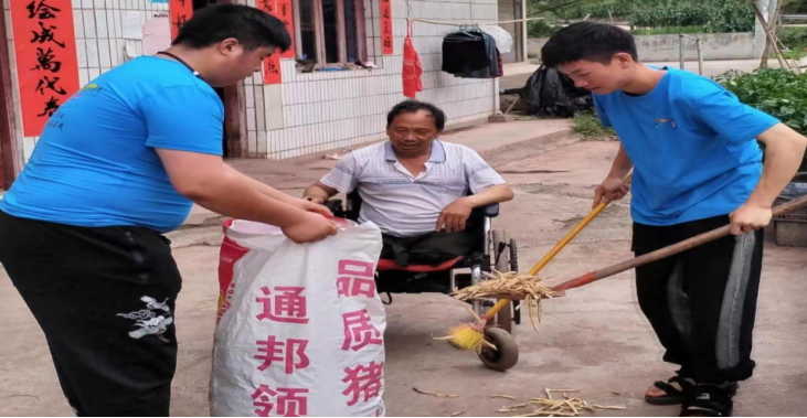 圖為點點宣傳隊幫助殘疾、空巢老人干農(nóng)活