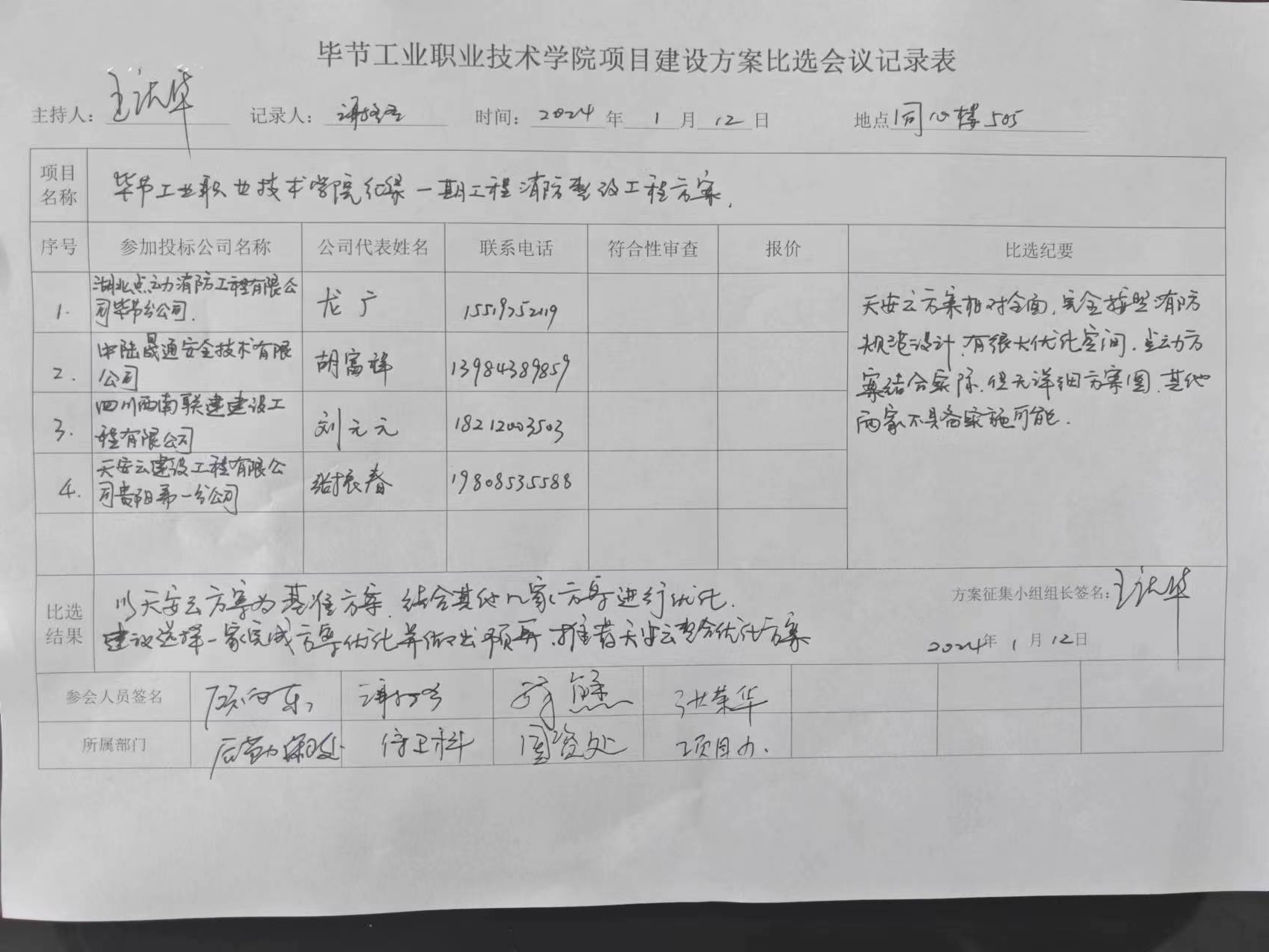 畢節(jié)工業(yè)職業(yè)技術(shù)學院征集一期工程消防整改工程方案比選結(jié)果公示