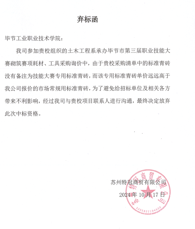 畢節(jié)工業(yè)職業(yè)技術(shù)學(xué)院土木工程系承辦畢節(jié)市第三屆職業(yè)技能大賽砌筑賽項(xiàng)耗材采購(gòu)流標(biāo)公告